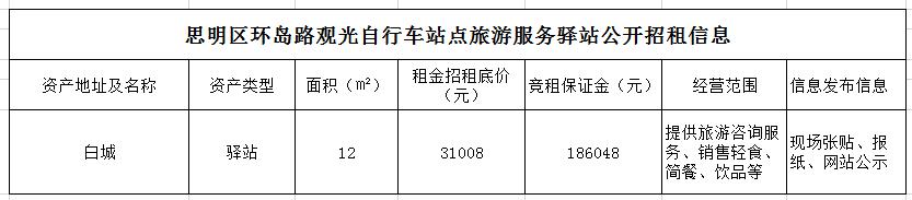 思明區(qū)環(huán)島路觀光自行車站點(diǎn)旅游服務(wù)驛站公開招租公告