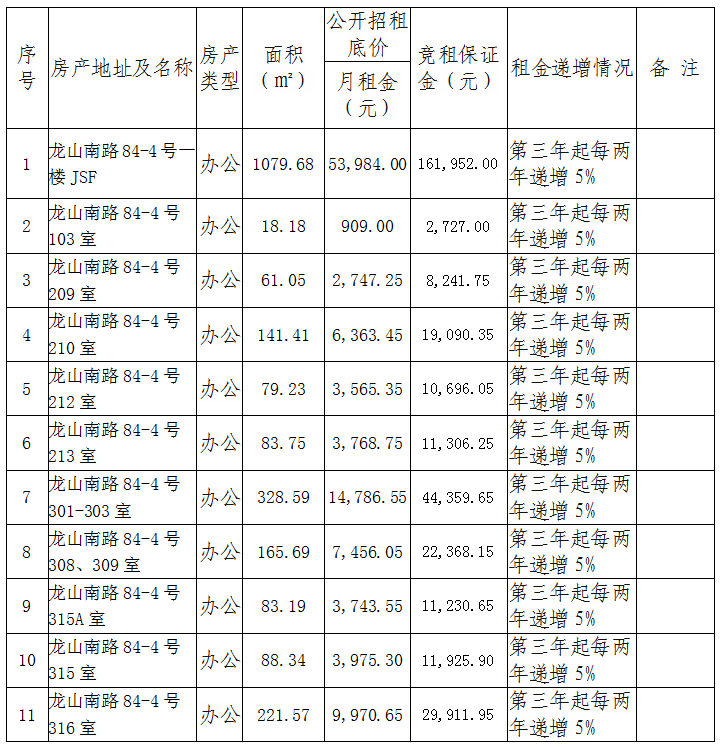 根據(jù)國有企業(yè)資產(chǎn)出租管理相關制度,我司決定對位于思明區(qū)龍山南路84-4號樓部分面積房產(chǎn)對符合入駐條件的意向承租人進行公開競價招租,具體信息如下: