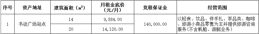 備注:意向承租人對(duì)上述情況應(yīng)有充分了解。詳細(xì)招租規(guī)則、合同、承諾函、報(bào)價(jià)單等招租文件于報(bào)名參加時(shí)領(lǐng)取。