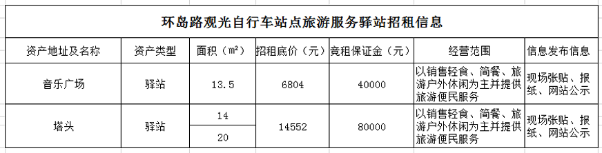 備注:意向承租人對上述情況應(yīng)有充分了解。詳細(xì)招租規(guī)則、合同、承諾函、報價單等招租文件于報名參加時領(lǐng)取。